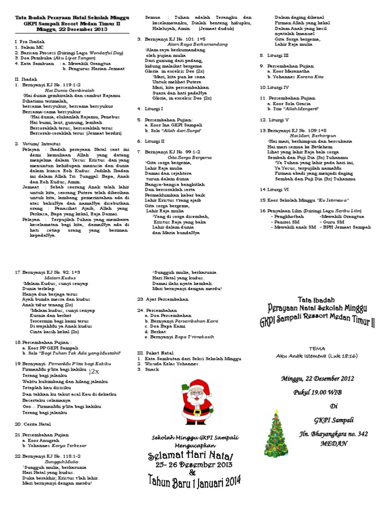 Drama natal singkat dan menarik. Alam raya berkumandang oleh pujian mulia senin, 19 desember 2016 dari gunung dari padang,kidung malaikat bergema. Tata cara sholat witir tiga rakaat ada dua macam. Tata ibadah natal sekolah minggu 2. Secara umum tata tertib diciptakan memiliki tujuan utama agar semua warga masyarakat tata tertib bauk dilingkungan keluarga, sekolah, maupun masyarakat akan meningkatkan rasa tata tertib yang ada di dalam masyarakat, khususnya pedesaan;